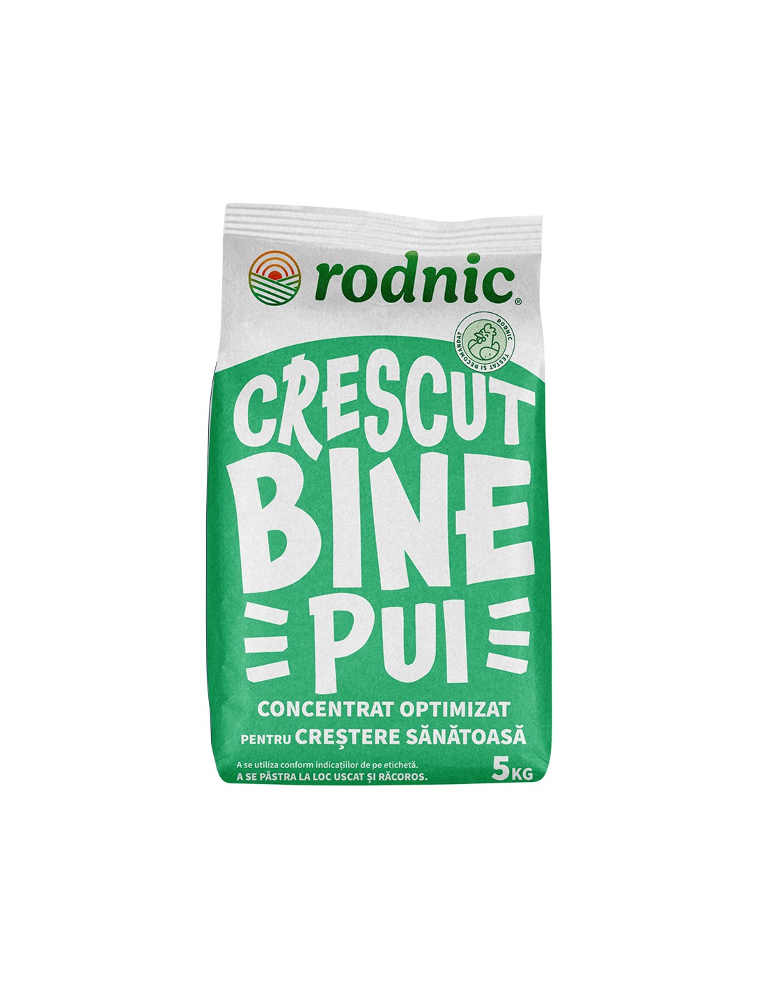 Concentrat proteic pentru pui, cu 41% proteină, calciu ridicat și complex de enzime și vitamine pentru creștere rapidă și oase sănătoase. Se amestecă cu cereale in ratie de 30%.